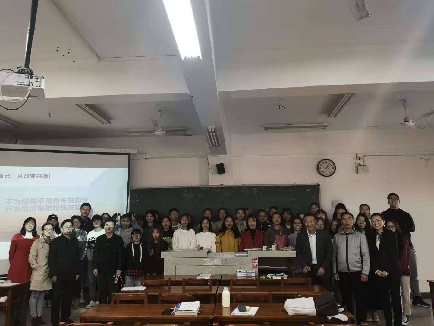在不忘初心、牢记使命主题学习教育活动中,会计学院党总支深入班级了解班级班会开展情况和班级建设,关心同学们的思想成长历程和心里诉求,以此推进学生思政工作更好更快发展。2019年10月29日下午,会计学院党总支书记石辉金、副书记柳志院长带领所有总支委员来到了18级会计9班的班会现场,全程参加该班班会。会上该班辅导员谭灿娇老师为该班全体同学上了一堂以“做更好的自己”为主题的班会,班会结束前总支书记石辉金同志对班会进行了点评,会后合影留念。
