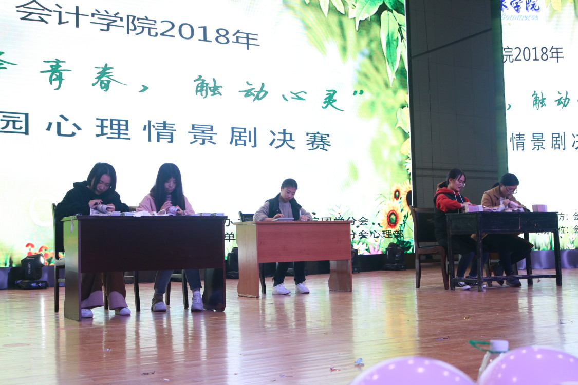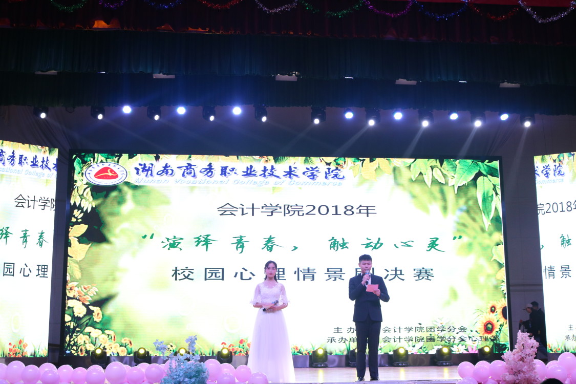 由会计学院团学分会主办,会计学院团学分会心理部承办的“演绎青春,触动心灵”校园情景剧大赛决赛于2018年12月4日晚在我校体育馆隆重举行。为了宣传心理健康知识,提高大学生对心理问题的认识,增强对心理问题的免疫能力, 培养大学生坚强意志,促进大学生全面发展,丰富校园文化生活。鼓励大学生把成长过程中出现的问题及应对方式展示出来,启发同学们学会以积极、幽默的心态应对压力。
