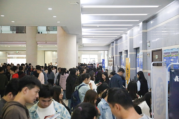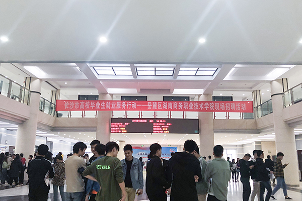 ▲10月22日下午,长沙市岳麓区就业服务进校园活动暨我校2020届毕业生首场校园招聘会在办公楼一楼大厅隆重举行