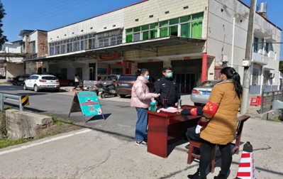 会计学院统计与会计核算专业,18统会2班詹涣月同学牺牲陪伴家人的时光,在黄冈当志愿者,为进出人员量体温。