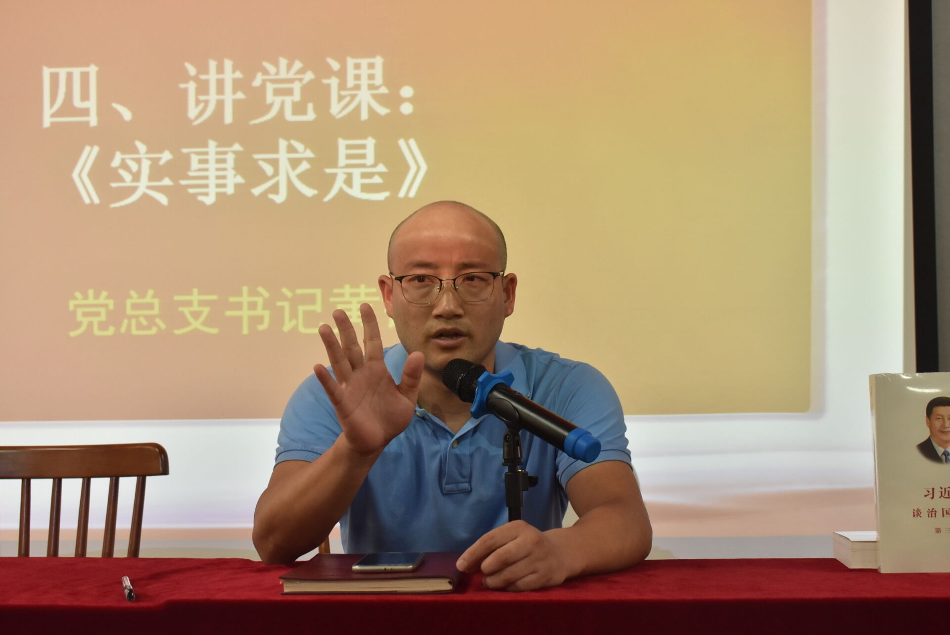 活动第四项由党总支书记黄铖讲党课:《实事求是》,实事求是就是在实际的事情当中去追求规律,懂得批评与自我批评,在不断的摸索中前进,在经验教训中成长,学习专注、敬业、严谨、精益求精的态度。实事求是,是马克思主义的根本观点,是中国共产党人认识世界、改造世界的根本要求,是党的基本思想方法、工作方法、领导方法,是党带领人民推动中国革命、建设、改革事业不断取得胜利的重要法宝。