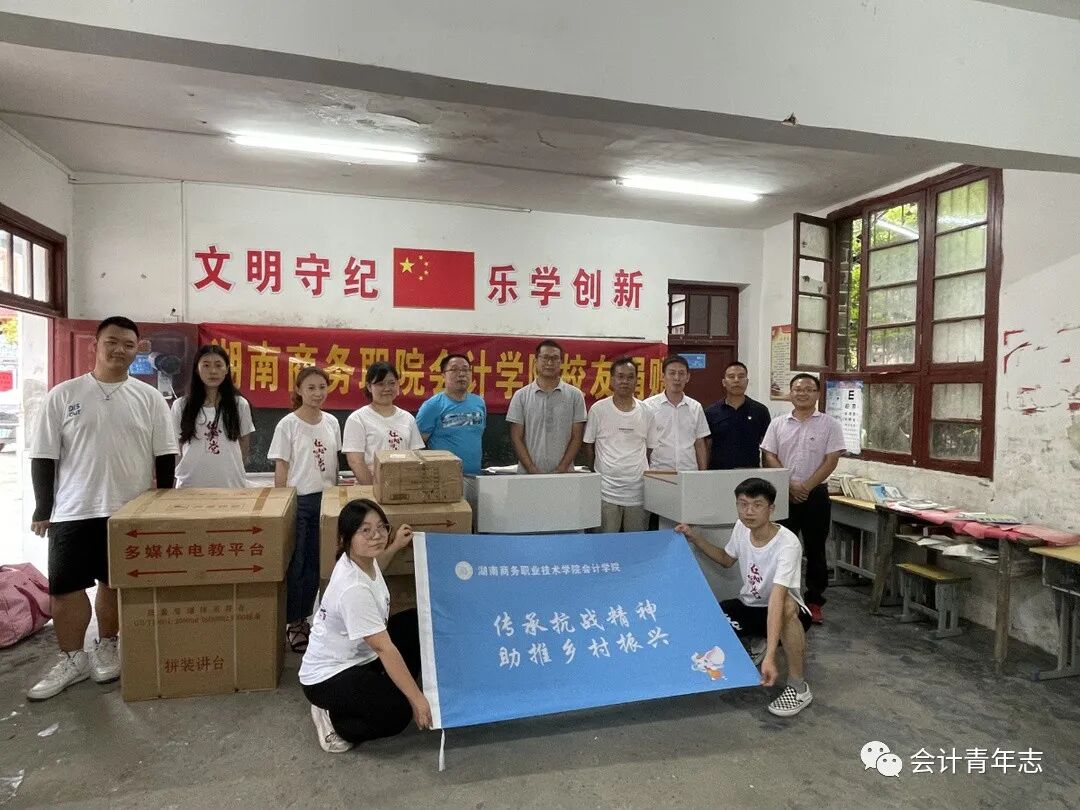 2021年7月9日,会计学院“传承和弘扬伟大抗战精神,助推乡村振兴”暑期三下乡社会实践团队走进了怀化市水东镇标东垅村,为村里的第一教学点送去了物资。