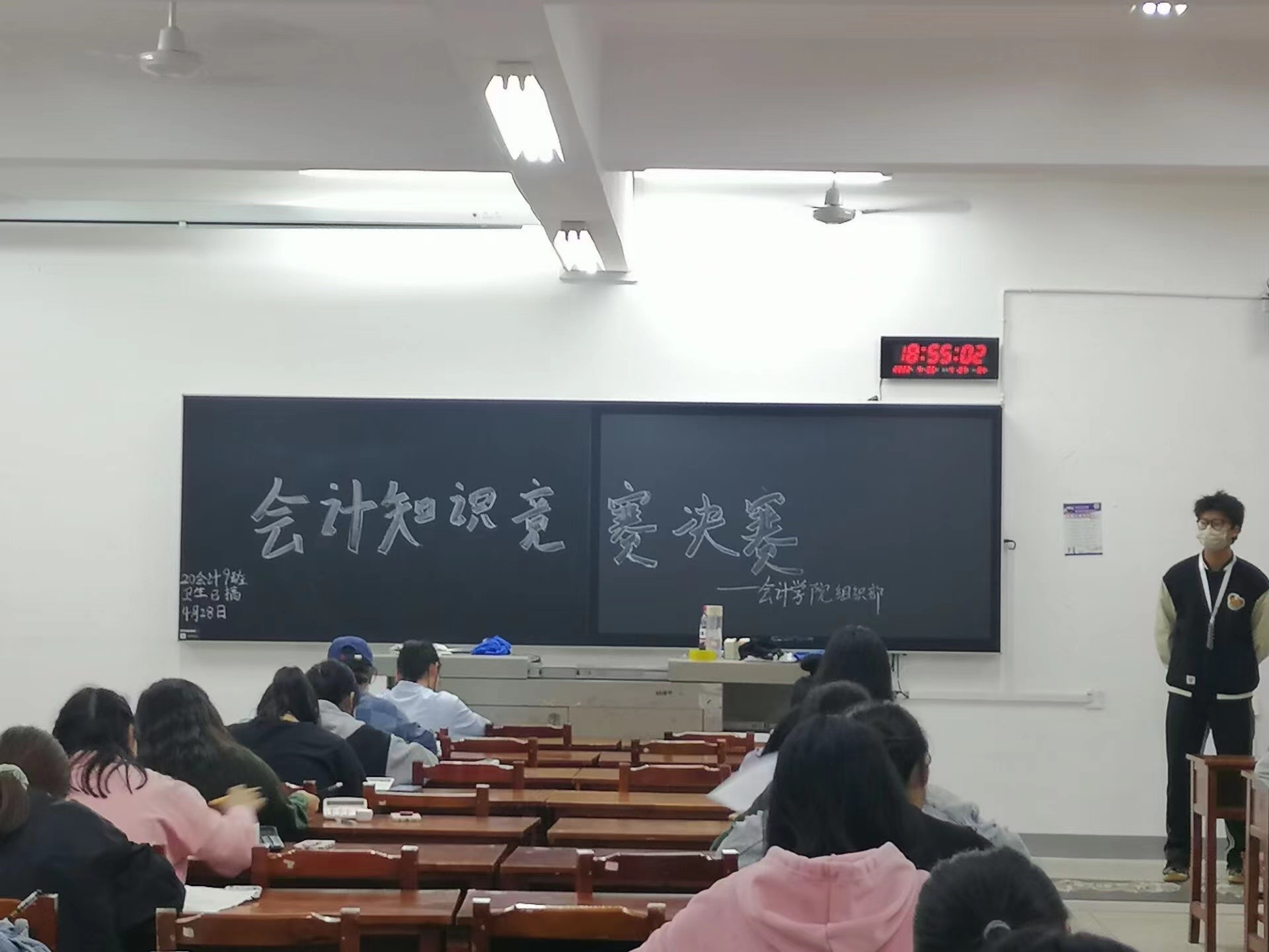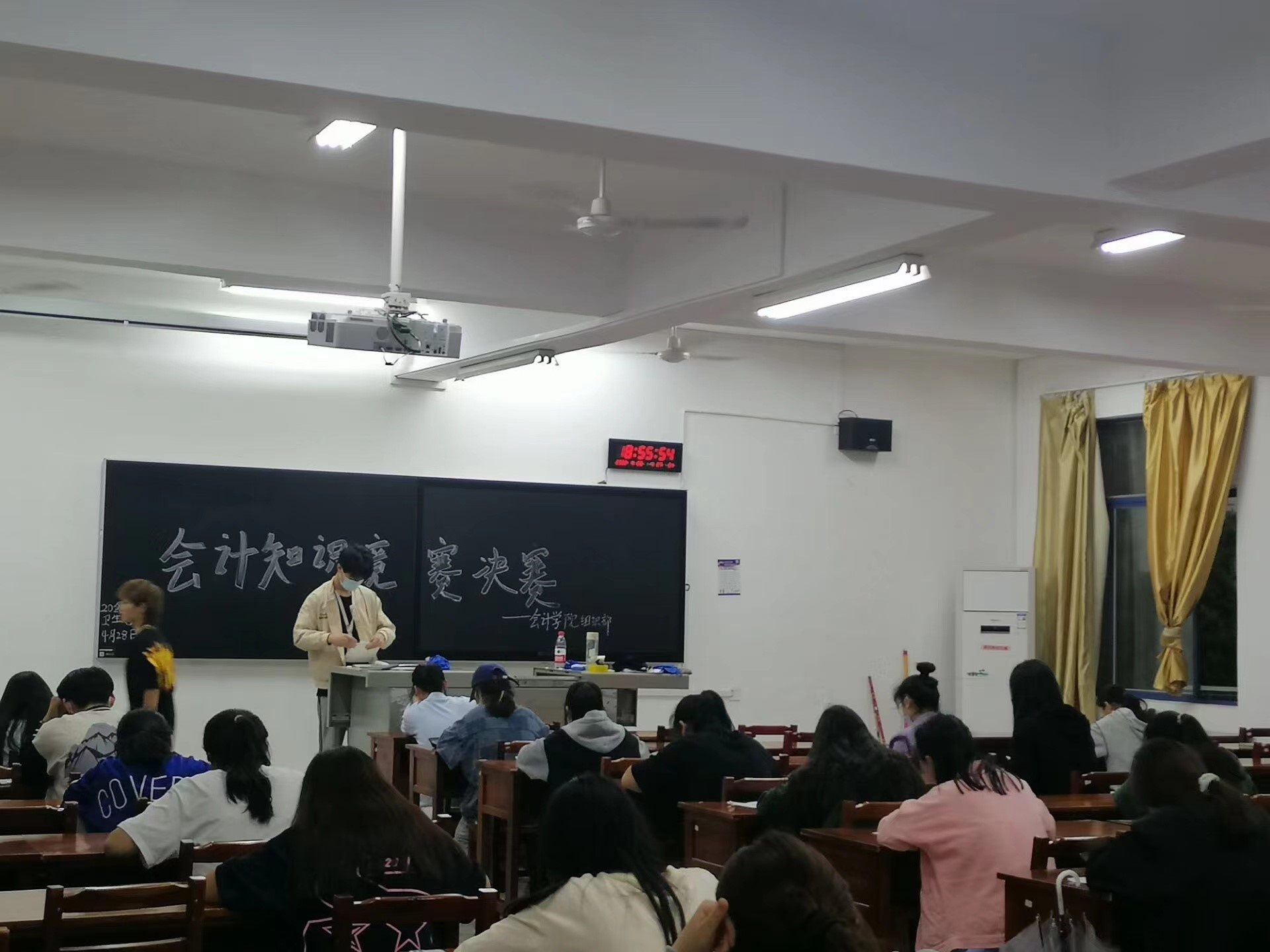 为巩固同学们的专业知识,锻炼同学们的财会思考能力,4月28日18:45,会计学院组织部在二教310开展“会计知识竞赛”活动。本次活动参与人员为大一、大二全体成员。