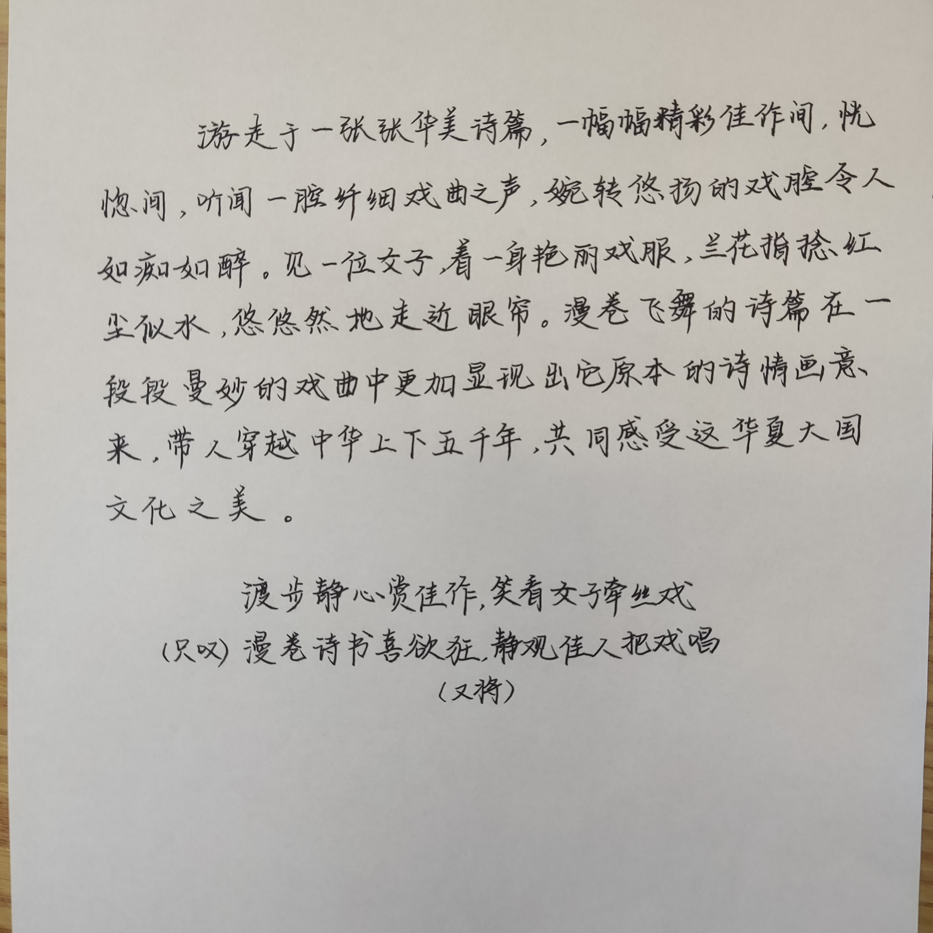 经过初赛的选拔,共有25位选手晋级决赛。12:50,选手们按照抽取的序号牌依次入座,主持人在宣读赛场秩序及比赛规则后,决赛正式开始。各选手手执钢笔书写,以“漫卷诗书喜欲狂”为主题,创作一首诗或写一段话。
