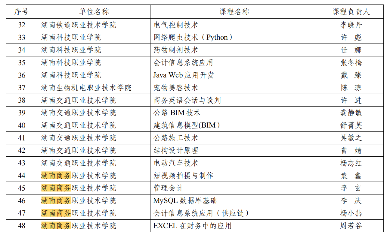 2022年2月14日,关于公布2021年湖南省职业教育省级精品课程与专业教学资源库项目评审结果公布(湘教通〔2022〕11 号),我院3门课程获批立项。其中李玄老师主持建设的《管理会计》、杨小燕老师主持建设的《会计信息系统应用(供应链)》、周若谷老师主持建设的《EXCEL 在财务中的应用》被确定为2021年湖南省职业教育高职精品在线开放课程建设项目