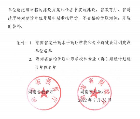 学院成功入选2022年湖南省楚怡高水平 高职专业群建设项目