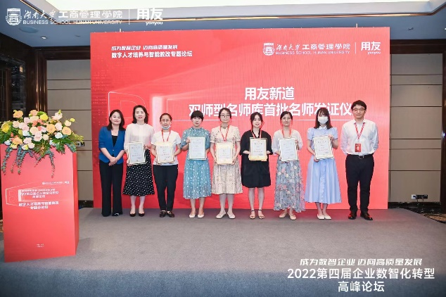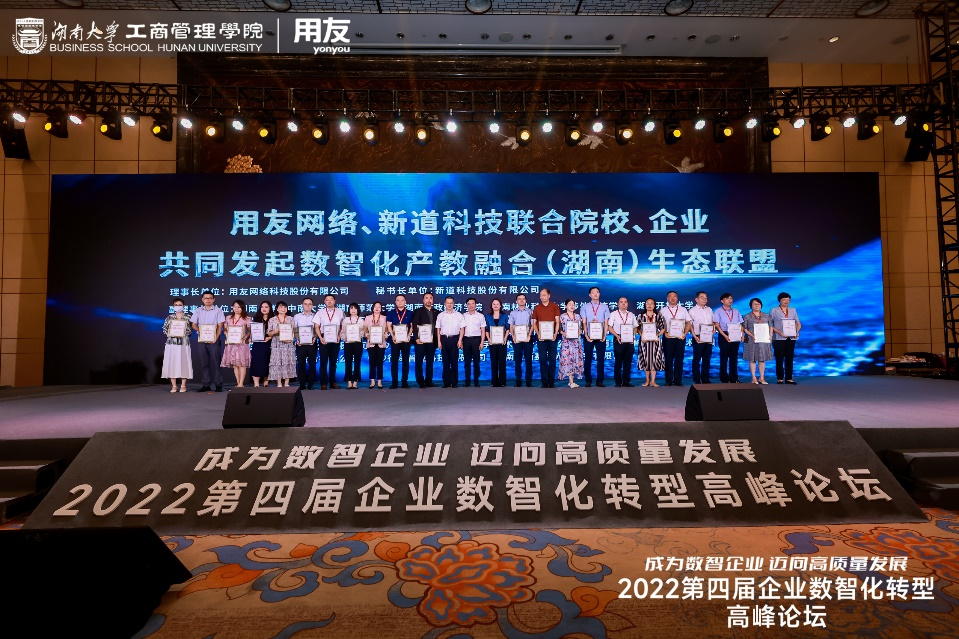 2022年7月21日,由湖南省工信厅、湖南大学、长沙市工业和信息化局、用友网络科技股份有限公司、新道科技股份有限公司等共同举办,湖南商务职业技术学院等单位支持的“2022第四届企业数智化转型暨数智人才培养高峰论坛”在湖南长沙成功举行。汇聚政府领导、行业专家、高校产业研究教授、企业家等逾千人,共同探讨数字中国背景下企业数智化转型之路,以及数字人才培养路径探索。在校-政-企从产业链、创新链、人才链多维度促进企业数智化转型及数智人才培养。