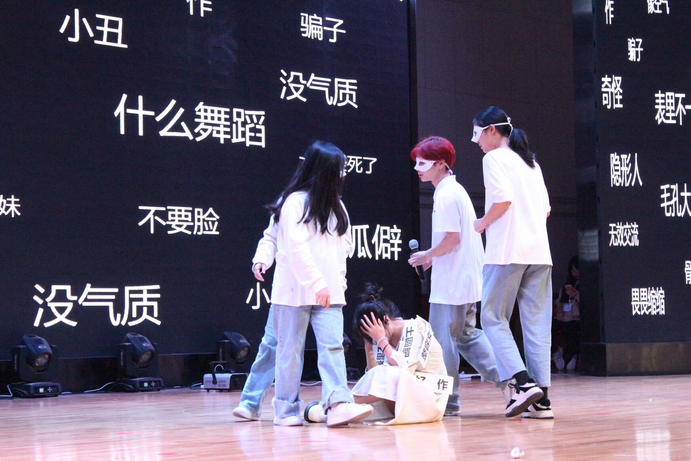 活动以舞蹈节目《大鱼》掀开帷幕,每支参赛队伍在舞台上尽情演绎,每段表演都迎来台下阵阵掌声与欢呼声。演出现场,6部剧本分别从不同角度,生动演绎了大学生在自我探索和成长的过程中面临的挑战与蜕变。其中,《和解》通过刻画一位成绩优异却仍被妈妈说不够上进、被同学排挤的大学生,仍坚持一段走出抑郁的成长故事。在《所谓羡慕》中,讲述了双胞胎姐妹在生活中受到语言暴力,彼此双方都互相羡慕,最后重拾信心的故事。