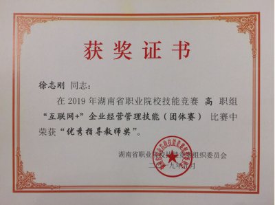 2019年9月,我院徐志刚老师在2019年湖南省职业院校技能竞赛高职组互联网+企业经营管理技能(团体赛)中荣获优秀指导教师奖;张亚清老师在2019年湖南…【查看全文】