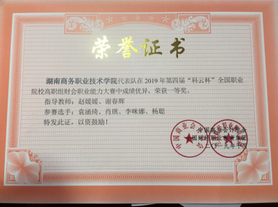 2019年10月,由我校会计学院学生唐伽泺、贺姣倩、郭贞、唐红波、刘成组成的代表队,在指导老师徐志刚、汤文思的带领下,荣获了由中国职业技术教育…【查看全文】