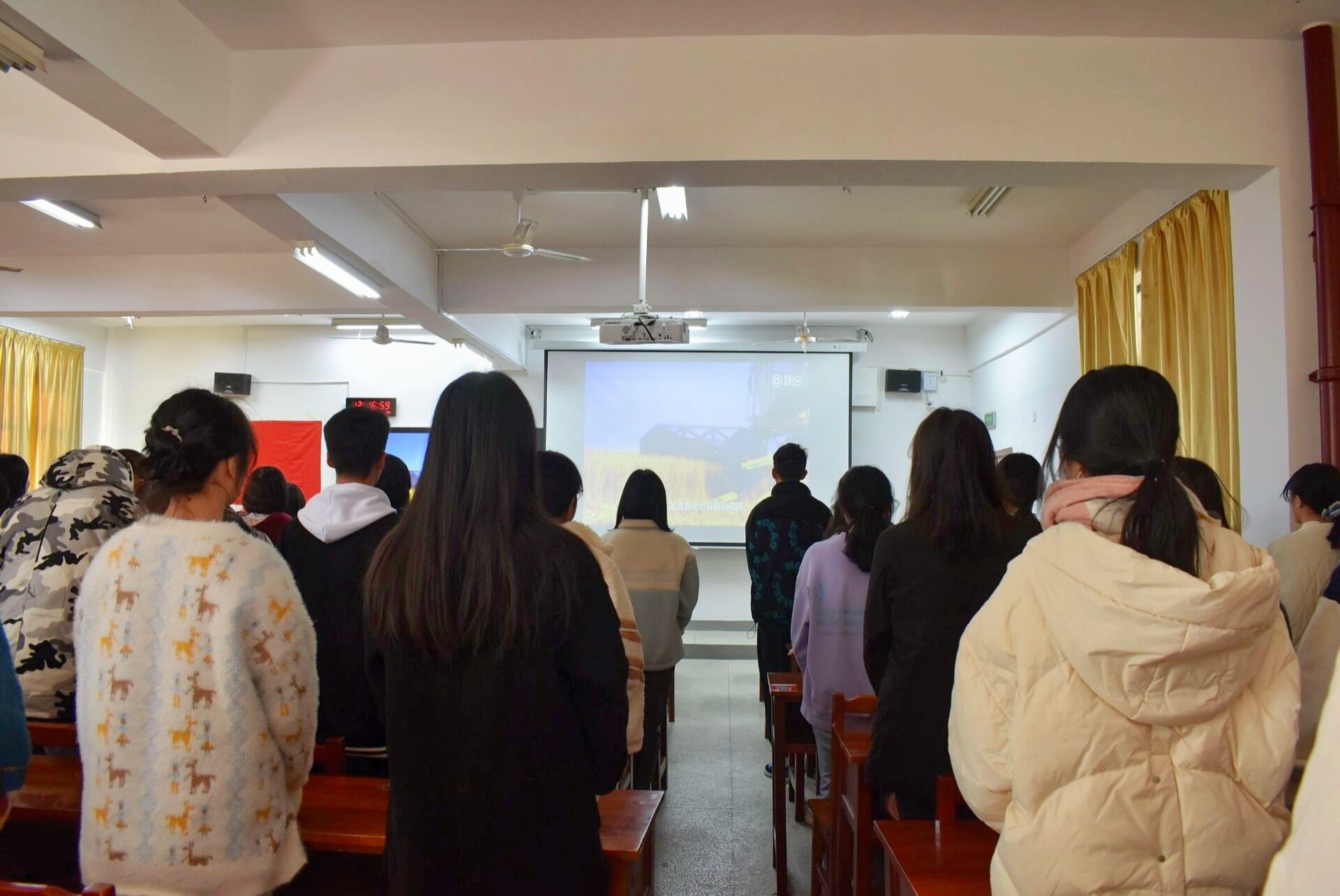大会第一项,全体起立,奏唱国歌