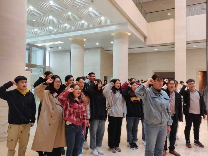 当天上午,湖南商务职业技术学院旅游管理学院学工党支部书记欧阳序华老师带领学生党员及部分入党积极分子一行来到湖南党史陈列馆。在陈列馆大厅,全体学生党员举起右手重温入党誓词。