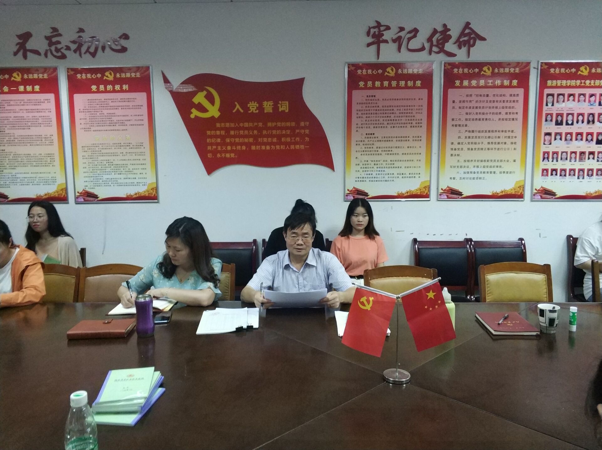 2019年6月4日下午13:30,旅游管理学院学工党支部的所有党员同志在办公楼208召开了2019年度党员发展大会。旅游管理学院学工党支部书记欧阳序华老师主持了本次会议。大会讨论关于沈雯等18位发展对象申请发展为预备党员。