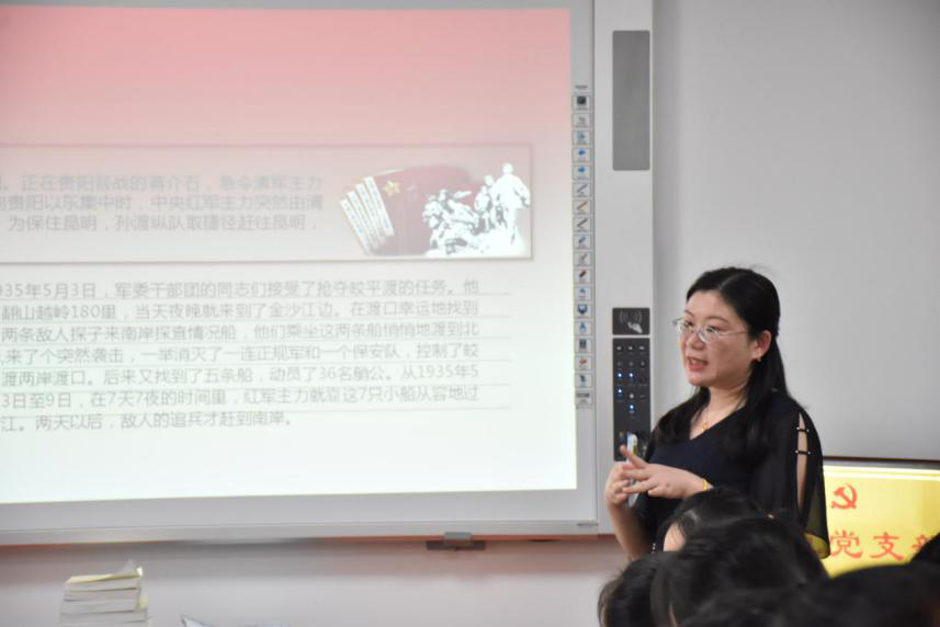 会议开始,由张书记为支部党员上党课,她从《七律·长征》切入,引出对长征历史的回顾,先后分别从长征的著名历史事件、长征的精神意义和怎样走好新时代长征路为大家授课。她指出,长征的胜利挽救了中国革命、锤炼了革命队伍并且确立了毛泽东的领导地位。而作为党员,我们要学习长征精神,不畏惧困难,勇往直前。