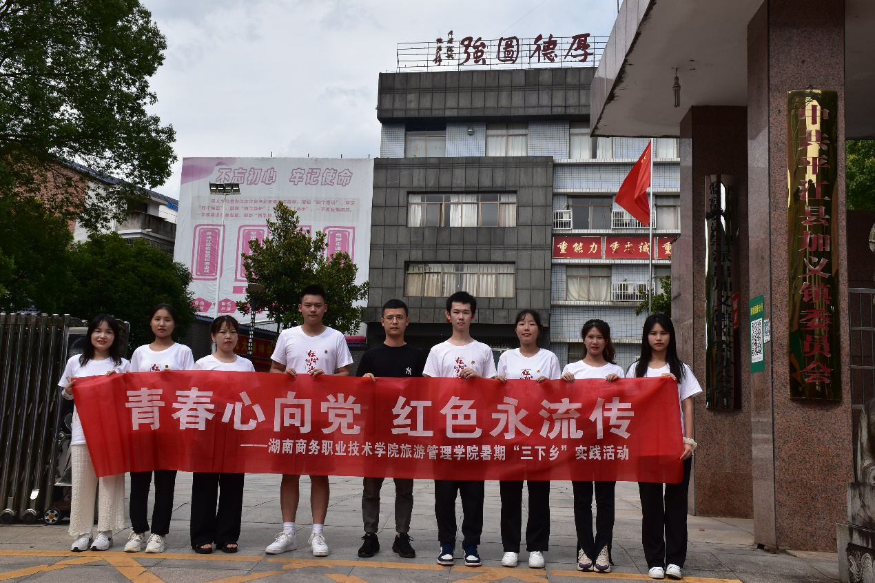 (通讯员 谢洁 范焕)为扎实开展党史学习教育,引导广大青年在观察实践中学党史、强实践、跟党走,努力成长为担负民族复兴大任的时代新人,以实际行动庆祝建党100周年。2021年7月8日,湖南商务职业技术学院旅游管理学院暑期三下乡团队的后浪们,来到平江县加义镇,开展以“青春心向党,红色永流传“为主题的实践活动。青年学生可以利用自己所学专业知识,积极开展“我为群众办实事”实践活动,为加义镇制定个性化红色研学精品线路,巩固当地脱贫攻坚成果,助力乡村振兴献计献策,展示新时代青年的良好风貌。