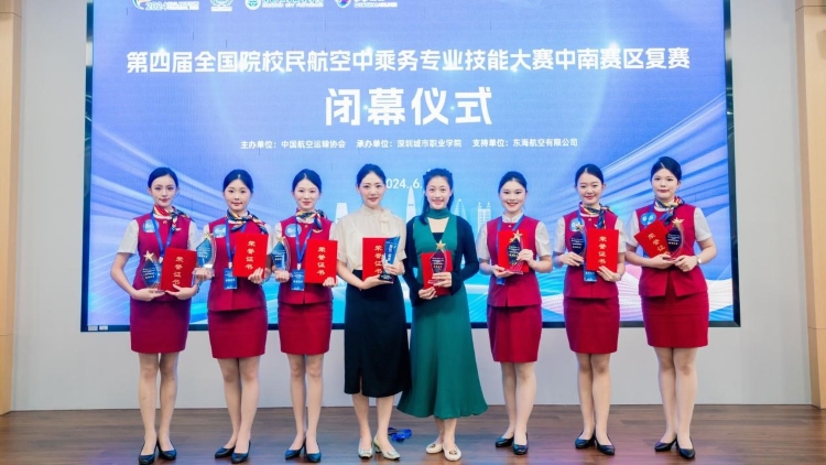 近日,我校在第四届全国院校民航空中乘务专业技能大赛中南赛区复赛中荣获团队二等奖,这一荣誉不仅彰显了我校空乘教育的实力,也展现了学生们的专业技能和风采。