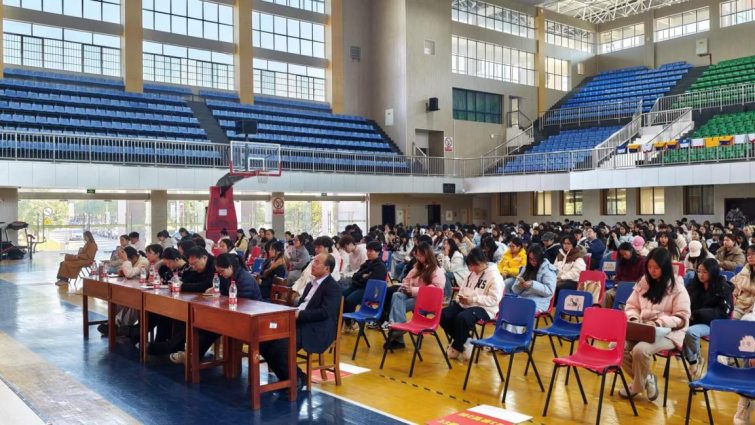 为精准助力2026届毕业生把握方向、提升竞争力,11月21日,旅游管理学院于体育馆隆重召开“2026届毕业生实习、专升本、就业动员大会”。院长刘韵琴、党总支书记刘沈荣、副院长李红、党总支书副书记欧阳序华,以及学业就业干事、毕业班辅导员共同出席,2026届全体毕业生参会。