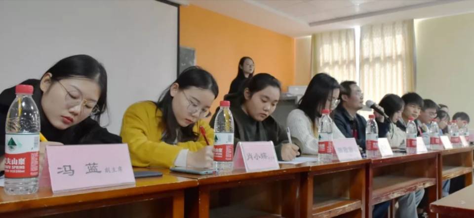 随后谢洁老师向我们分享了她最喜欢的几句格言,用她自身丰富的履历和经验,向同学们讲述了一些为人处事的道理和方法。最后副书记罗芷伊及各位主席团成员针对以后的工作向全体团学分会的成员们提出了几点要求:一:要注重干部间的互相配合与工作、二:在工作中要挥洒热情,秉着不忘初心的态度认真对待工作,不忘初心!