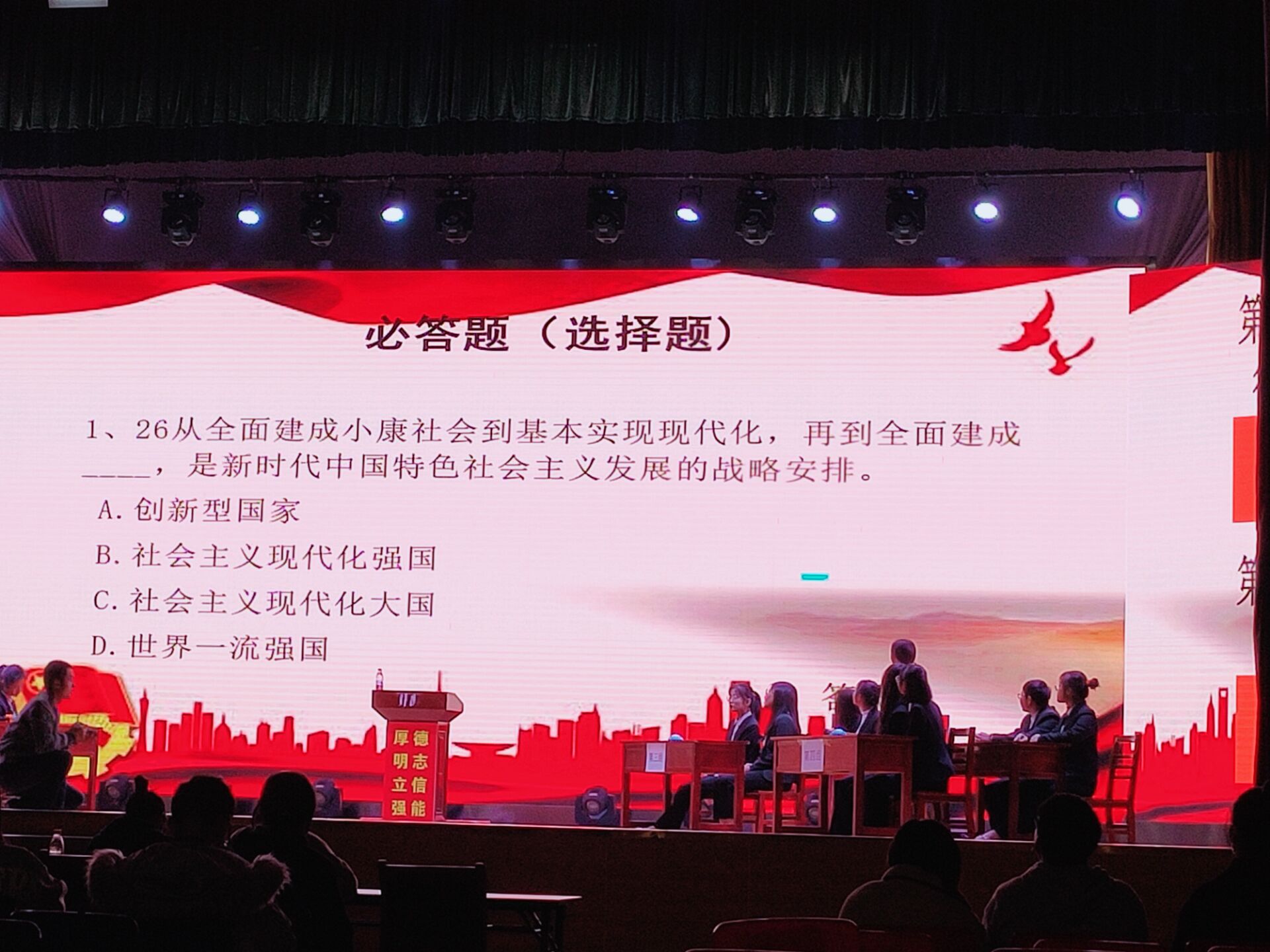 2019年12月12日晚上7时,旅游管理学院“习近平新时代中国特色社会主义思想”知识竞赛决赛于校体育馆举行。此次知识竞赛由湖南商务职业技术学院主办,旅管学院学习部,纪检部,组织部承办。本次竞赛旨在组织引导广大学生深入学习宣传贯彻习近平新时代中国特色社会主义思想和党的十九大精神,让当代大学生更加了解青年的职责。出席本次竞赛的评委为辅导员陈璐老师以及旅游管理学院团学分会主席团。
