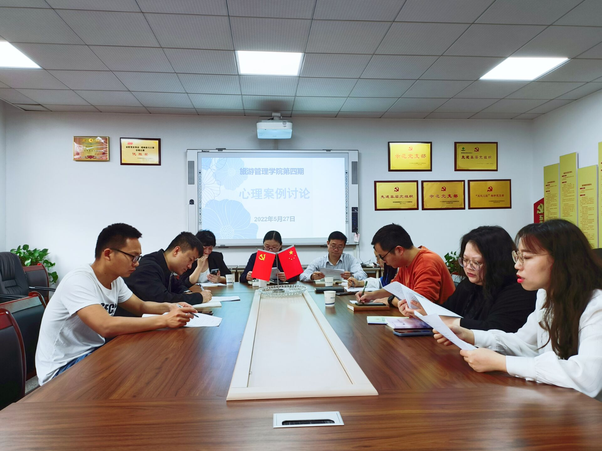 5月27上午9点,旅游管理学院第四期心理案例研讨会在B207如期开展。本次会议由旅游管理学院辅导员李晨霞老师主持,旅游管理学院党总支书记张丽萍、副书记欧阳序华、校心理健康教育中心主任高明老师、陈铁老师、赵灿老师及旅游管理学院全体辅导员参加。