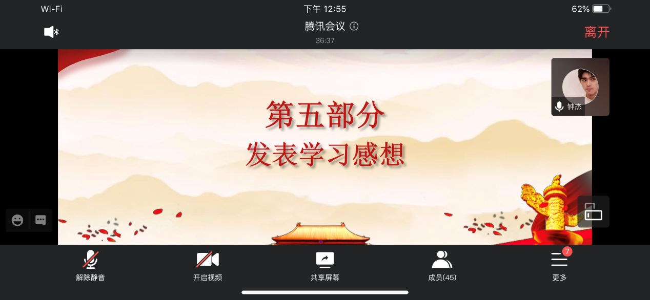 随后观看“党史学习教育动员大会”,针对学习内容,支部党员积极参与讨论分享,钟杰同志说“历史是最好的老师,通过本次主题党日学习更加深刻的认识到我们党的理论是正确的,党中央确定的改革开放路线方针是正确的,改革开放的一系列战略部署也是正确的,作为大学生尤其是面临毕业的大学生,更要端正思想,做好自己的本职工作,同时要发挥能量,服务他人”。支部党员均表示作为党员,要把党史、新中国史学习作为提升自己党性修养、思想境界、道德水平的精神养料,切实增强“四个意识”、坚定“四个自信”、做到“两个维护”,在这门党史国史的“必修课”中修心、修德、修身,坚定地走好中国新时代改革发展的奋斗之路。