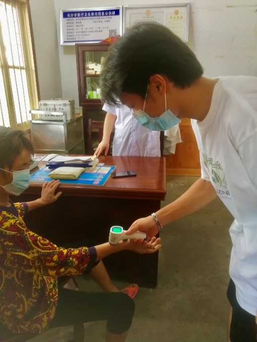 测量体温,时刻警惕“高温警报”;健康码核验,即是对细心的要求,也是对耐心的考验;就医咨询,一上午完成数百次服务……19计网3班入党积极分子侯嘉鹏八月初技能竞赛培训结束,从学校回家后便主动联系社区,希望能为疫情防控做些利索能及的事情,随后他便被安排在望城区白箬铺镇社区分诊医院做抗疫志愿服务者。老年人和小孩是就医的主要人群,他们对智能手机如何查看健康码存在一定的使用盲区,加上炎热的天气,给侯嘉鹏的工作带来了极大的考验,他耐心地指导患者们操作,直到查验为绿码才准通行,为就医环境保驾护航。侯嘉鹏感叹道,“虽然志愿服务过程有些辛苦,而且容易产生语言沟通障碍,但耐心和细心的付出都得到了认可,让我很有成就感。”