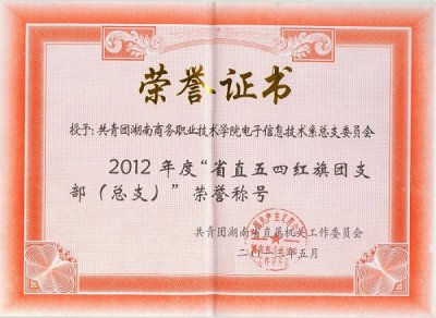 祝贺我团总支委员会被授予“2012年度省直五四红旗团支部”荣誉称号