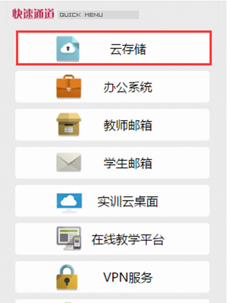 1.打开学院信息中心网站:http://www.hnswxy.com/ics,在网站的右侧的“快速通道”下有“云存储”的链接,单击打开它。也可以直接在浏览器的地址栏中输入:https://anyshare.hnswxy.com