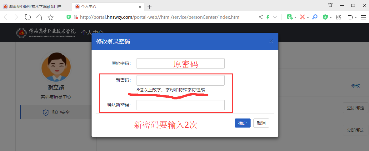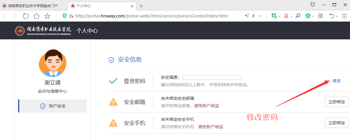 注:因信息门户涉及到各种工作、学习和金融数据,所以请务必修改初始密码。