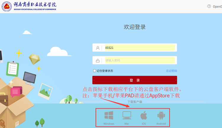 我院校内云盘采用的是来自于上海爱数信息技术股份有限公司的“爱数AnyShare”产品,当前服务器版本号是6.0.13。自当前版本开始,我们采用了客户端定制化技术对校内云盘的WEB端和客户端进行了定制。定制后的客户端软件在登录时不再需要填写服务器地址,界面也做了相应改动(WEB端仍然需要在浏览器输入地址),客户端软件名称变成了“湖南商务云盘”。相关说明如下: