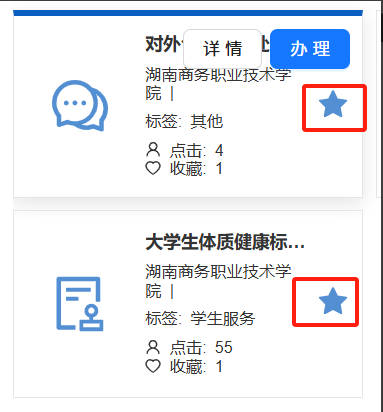 收藏方法如下图:可以看到,点击小星星之后,图标变成蓝色,这两个服务会出现在上图收藏服务板块