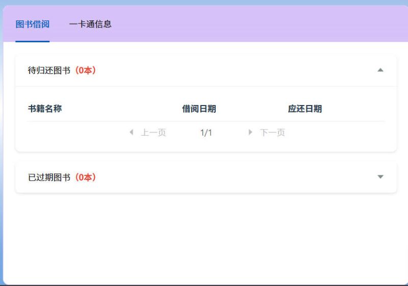 该部分主要以展示为主,包括一卡通账号信息、图书借阅和本周消费记录等。