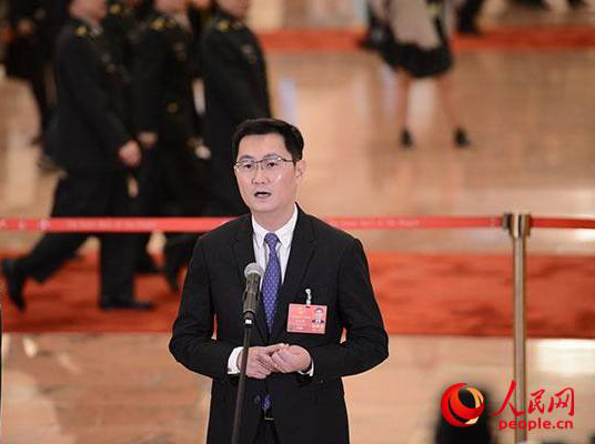 全国人大代表马化腾在“代表通道”接受采访(人民网 资料图)