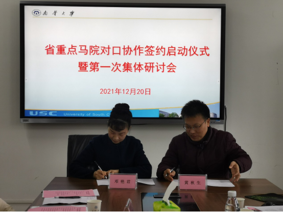 湖南商务职业技术学院马克思主义学院邓艳君院长和南华大学马克思主义学院黄秋生院长共同签署了《湖南省高校马克思主义学院对口协作协议书》,双…【查看全文】