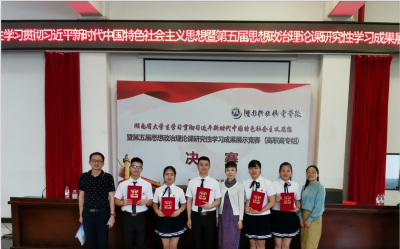在5月27日结束的湖南省大学生学习贯彻习近平新时代中国特色社会主义思想暨第四届大学生思想政治理论课研究性学习成果展示竞赛决赛中,由思政课部…【查看全文】