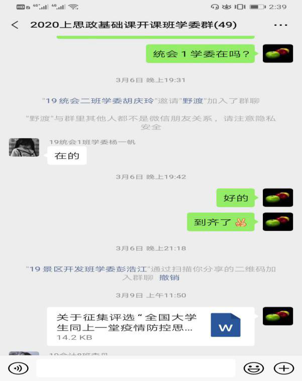 老师们一边完善在线课程建设,一边积极对接班级、联系学生,指导学生熟悉学习流程。在短短两三天内,教研室的老师们想尽各种办法,联系到每一位学生,逐一核查与手动归班,做到了网上班课一个不落。