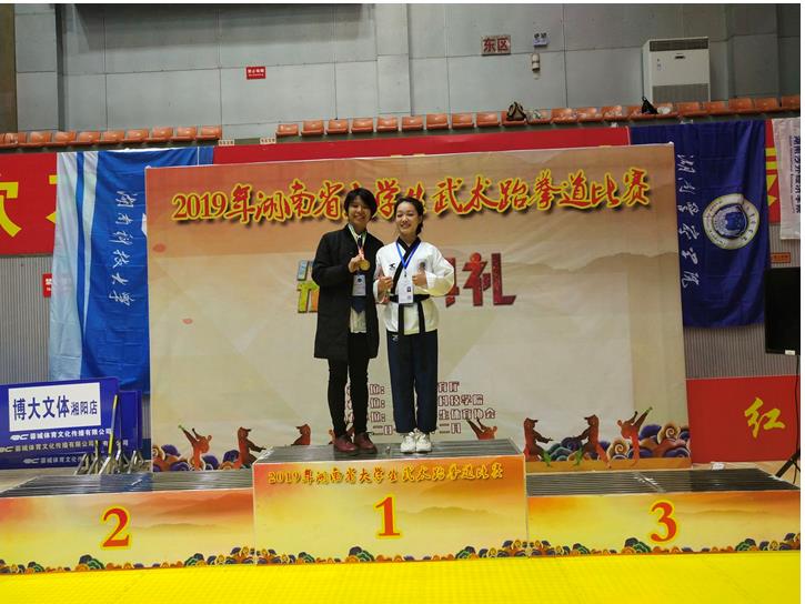 12月8日至13日,2019年湖南省大学生武术跆拳道比赛在娄底市人文科技学院拉开帷幕,共有86所学校,980余名运动员参加本次比赛。我校跆拳道队由体育课部敬松部长担任领队,由体育教研室崔宏超主任,体育课部教师柳颉、龙明全担任教练。经过激烈比拼,我校运动员顽强拼搏、奋勇向前,共取得一块金牌,一块银牌,两个第五名的好成绩。