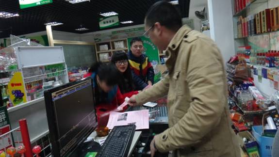 志愿者们向商店老板们说明来意,宣扬爱心(二)