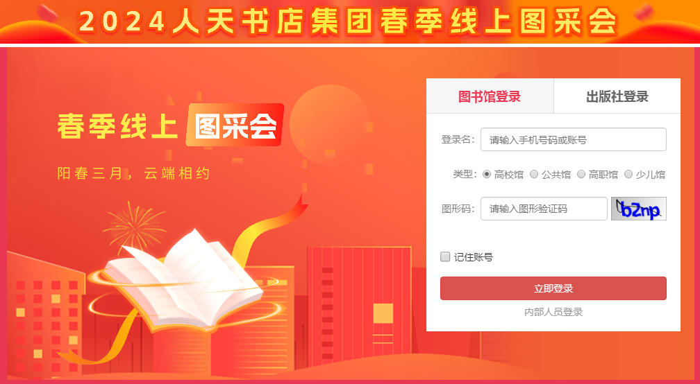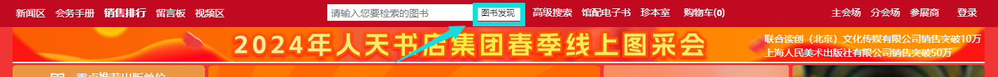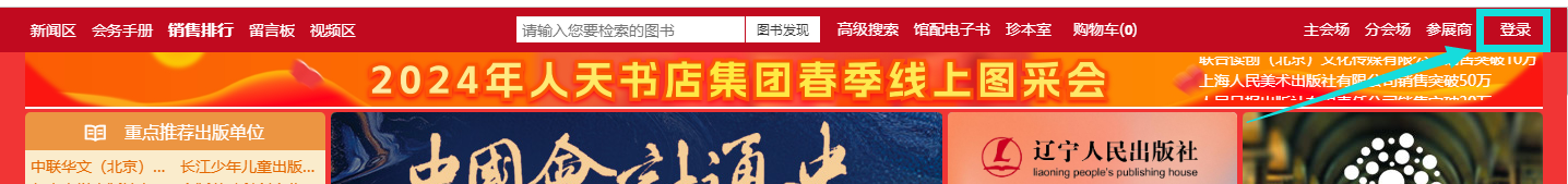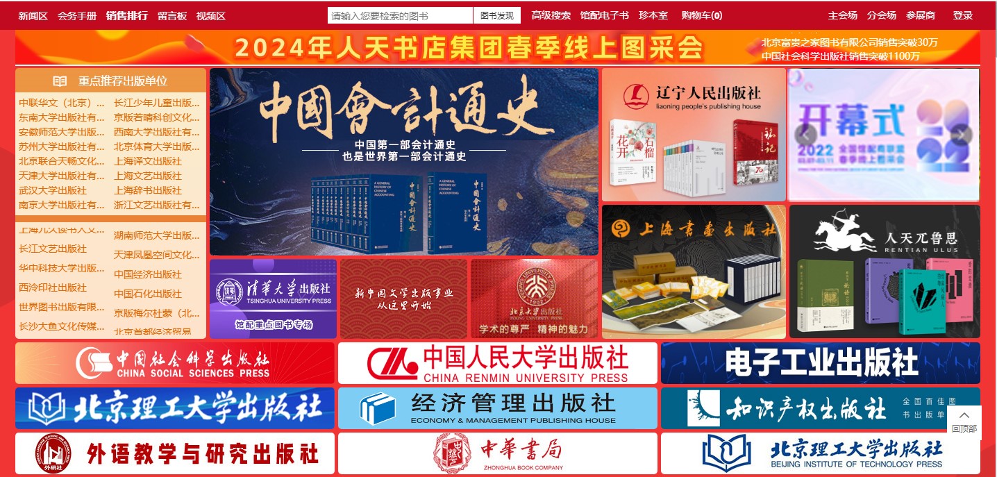 1、主会场:其右上角展示图书采会开幕式领导讲话及平台消息发布。其他板块主要展示重点出版社书目,直接点击出版社名称即可进入选书界面。