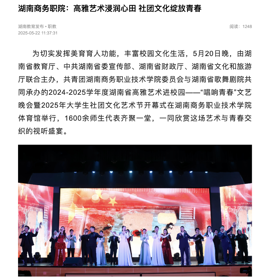 湖南教育发布报道——湖南商务职院:高雅艺术浸润心田 社团文化绽放青春