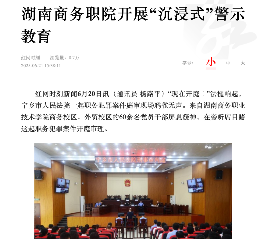 红网报道——湖南商务职院开展“沉浸式”警示教育