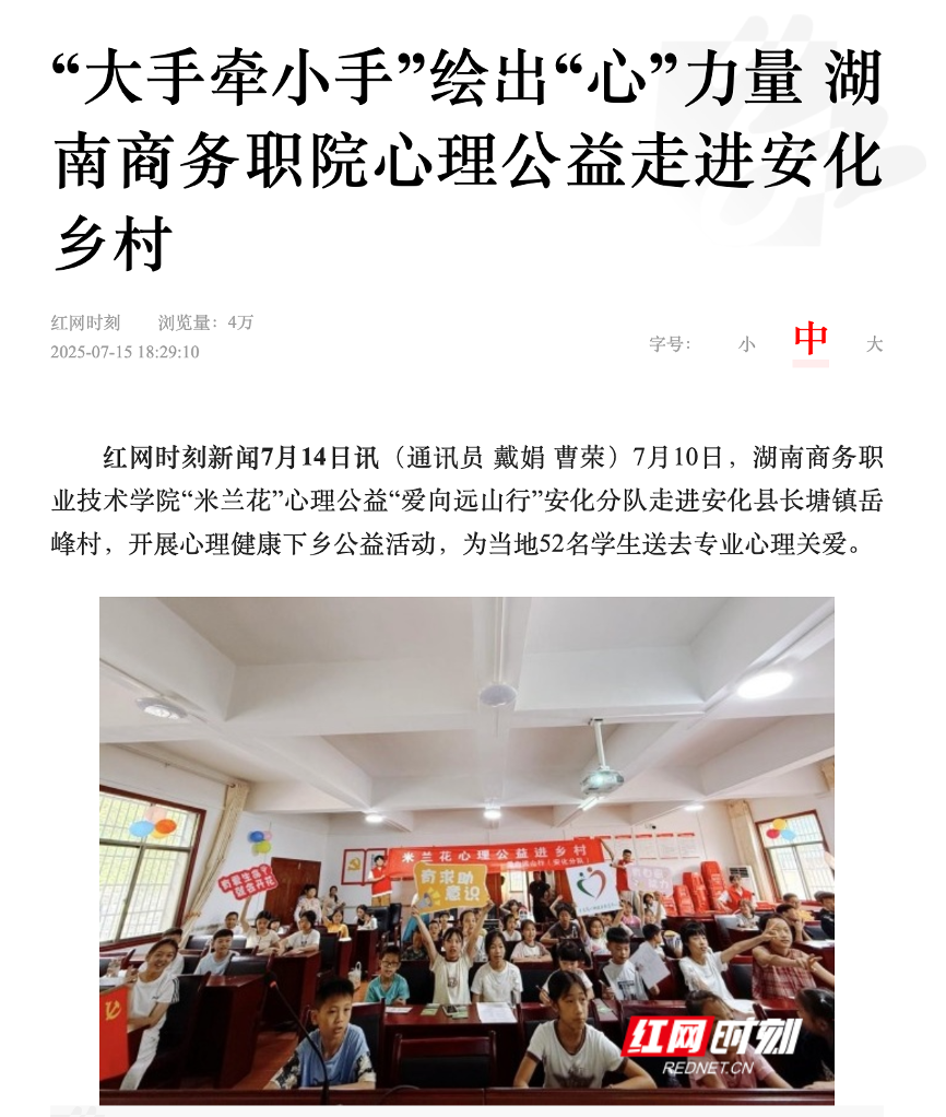 红网报道——“大手牵小手”绘出“心”力量 湖南商务职院心理公益走进安化乡村