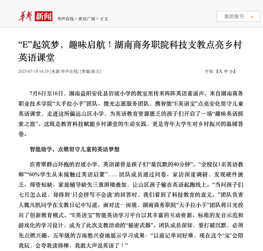 华声在线报道——“E”起筑梦,趣味启航!湖南商务职院科技支教点亮乡村英语课堂
