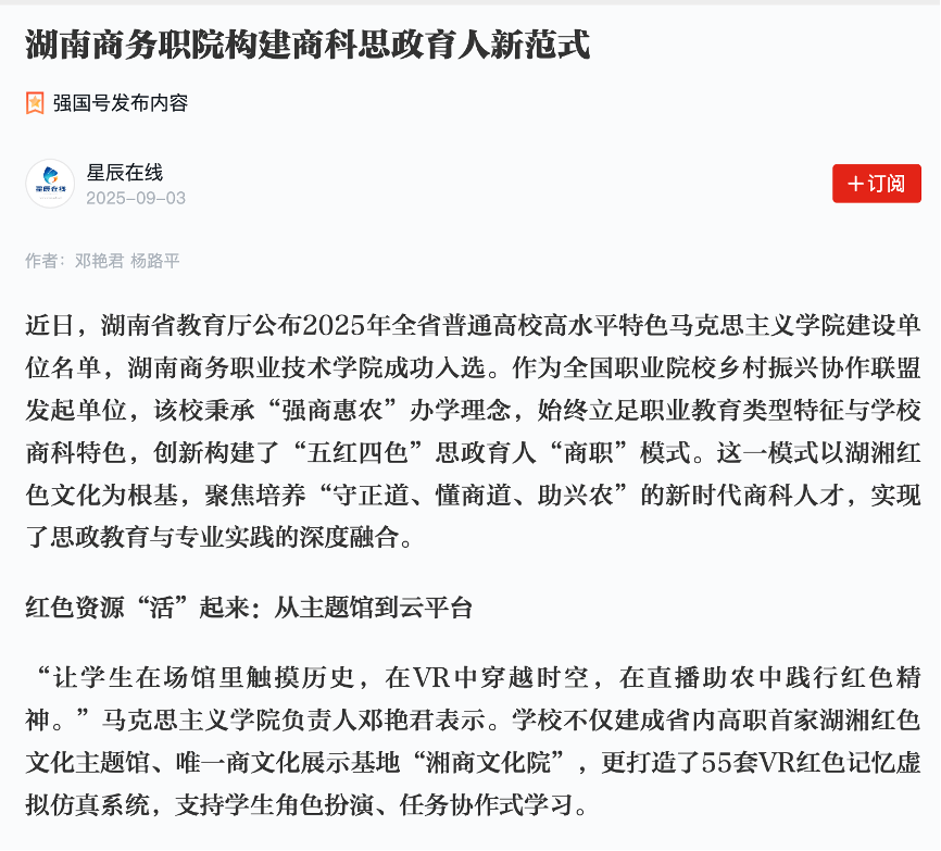 湖南教育发布报道——“五红四色”塑新人 湖南商务职院构建商科思政育人新范式