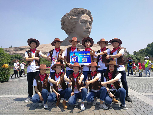 5月11日,28名身着牛仔形象服装的经贸学院市场营销专业学生奔赴长沙橘子洲头、岳麓山、烈士公园等风景名胜区开展营销宣传,拉开了我校与湖南沃成科技有限公司“2019第十八届湖南糖酒食品交易会营销实践活动”的序幕。