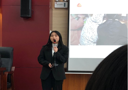 令场上观众动容的是19级旅管3班一袭红裙的胡念同学,她姿态大方,生动形象地讲述了湖南的湘绣,以图文并茂的形式让现场观众们感受到了湘绣具有的精湛技艺和独特的艺术风格,胡念同学播放的vlog更是赢得观众的热烈追捧。