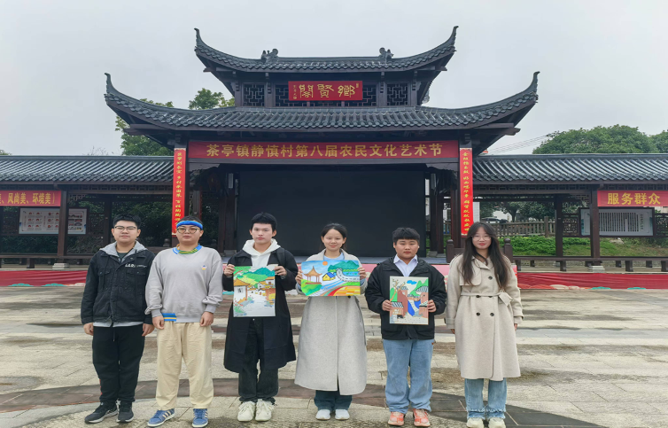 周文杰、王凡、彭震同学用绘画作品展示了他们心中美丽的静慎村