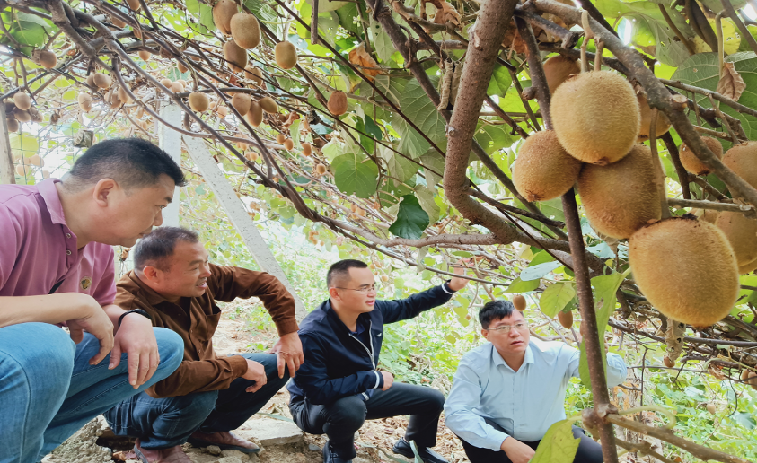 图1:方甲玲在猕猴桃园查看猕猴桃长势情况