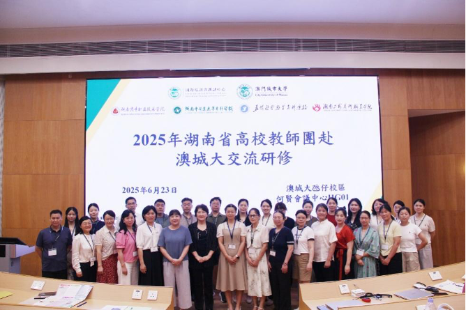 近日,湖南商务职业技术学院市场营销、大数据与财务管理两个省“楚怡”高水平专业群的8名骨干教师赴澳门城市大学开展研修培训交流活动。本次研修培训交流活动为期4天,培训内容涵盖粤港澳大湾区银发经济、人工智能教学应用、高校教师核心素养、研究型教学改革以及文创科技融合等多个前沿领域。