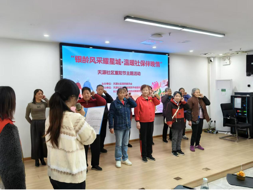 岁岁重阳,今又近重阳。为传承中华民族尊老敬老的传统美德,丰富社区老年群体的精神文化生活,2025年10月23日,湖南商务职业技术学院经济贸易学院学工党支部联合经济贸易学院团总支协助湘江新区天顶街道天源社区共同开展了“银龄风采耀星城·温暖社保伴晚情”重阳节主题活动。